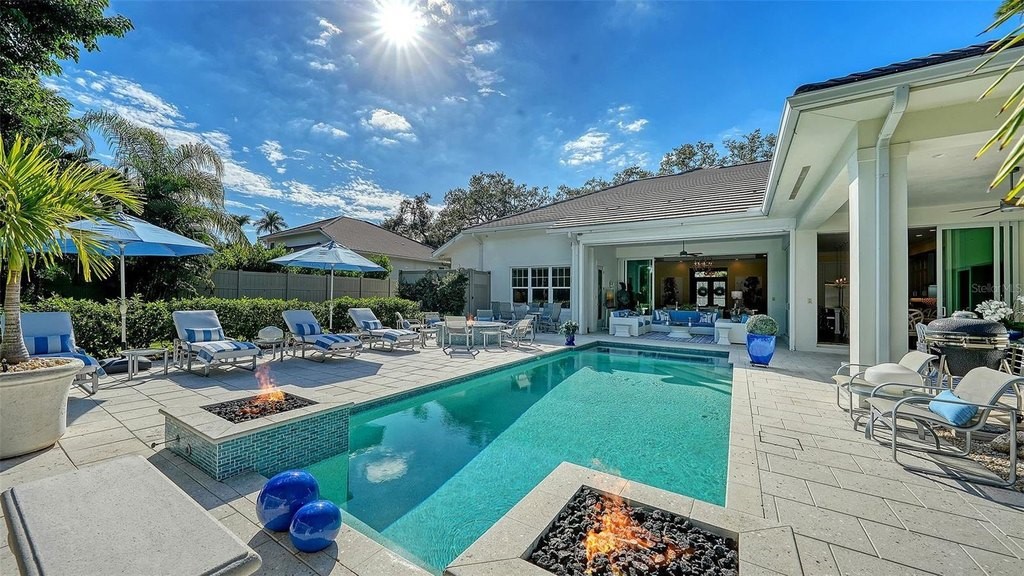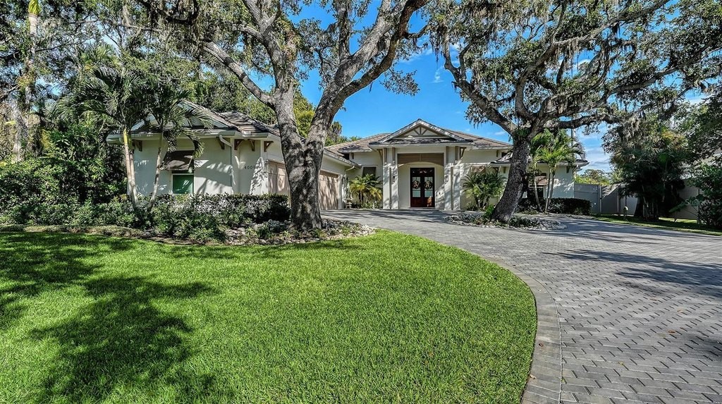 Exquisite home by Heritage Builder, situated on almost half an acre, in the most desirable area, West of the Traill, on a quiet canopy street. Lovely styling inspired by homes in the West Indies with the finest of interior finishes and momorable architectural details. A breathtaking view of a tropical paradise is seen from the Great Room and Kitchen, with sparkling pool and expansive area for entertaining including a beatiful covered area and outdoor kitchen. The owners suite features a formal entry vestibule, vaulted ceiling, his and her walk in closets, and a spacious bathroom with dual vanities. The open design kitchen has Chef's grade stainless steel appliances, full height backsplash and walk in pantry. Hurricane, impact rated, insulated, low E windows with vinyl frames, spray foam insulation and 8' solid core doors. This remarkable residence is more like a tropical resort on a "one of a kind" property. Located 10 minutes from downtown and the beaches.